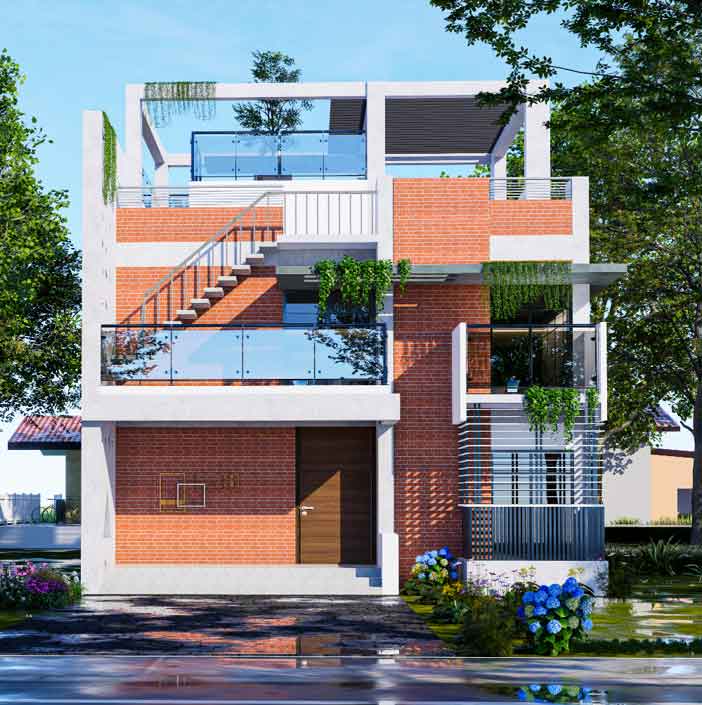 A modern duplex residence in Rajshahi designed to reflect both elegance and functionality. The architectural language embraces clean lines, bold forms, and a balanced use of textures to create a striking presence along the urban landscape.